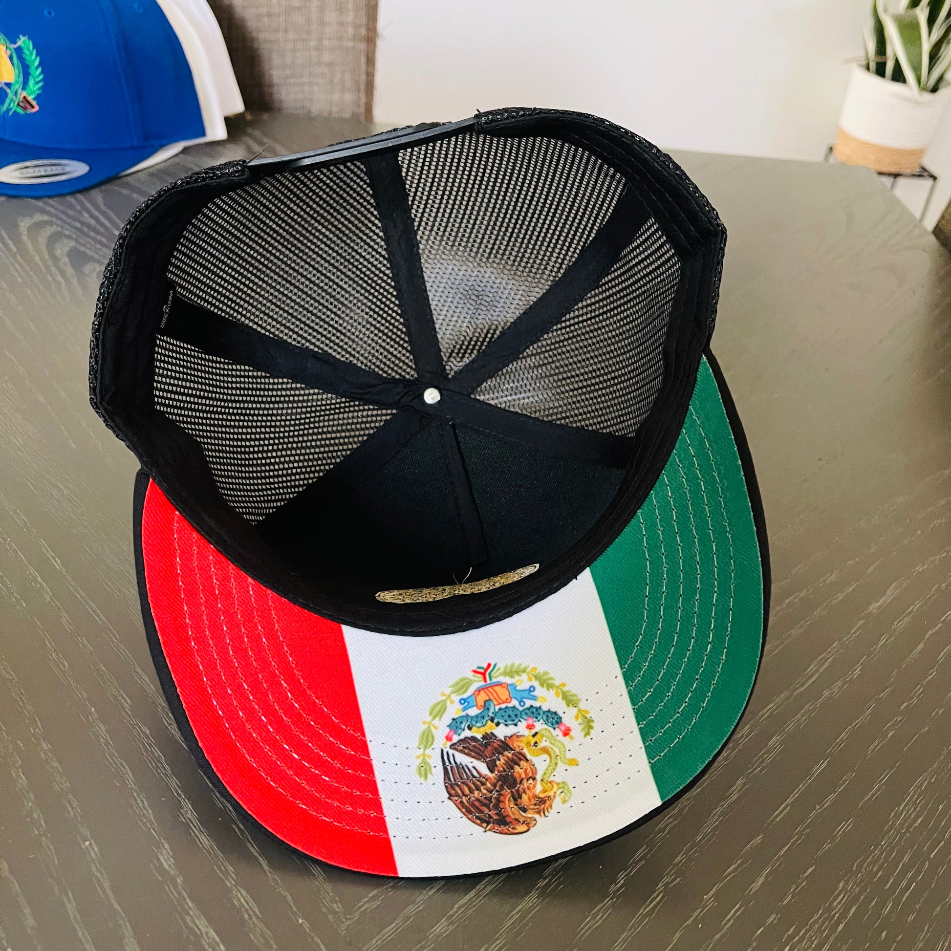 Celebrate the vibrant culture and rich history of Mexico with our exquisitely designed hat. This unique piece showcases the iconic Mexican flag on the under visor, paying homage to the nation's patriotism and unity. With its bold and vivid colors, it makes a bold statement wherever you go.