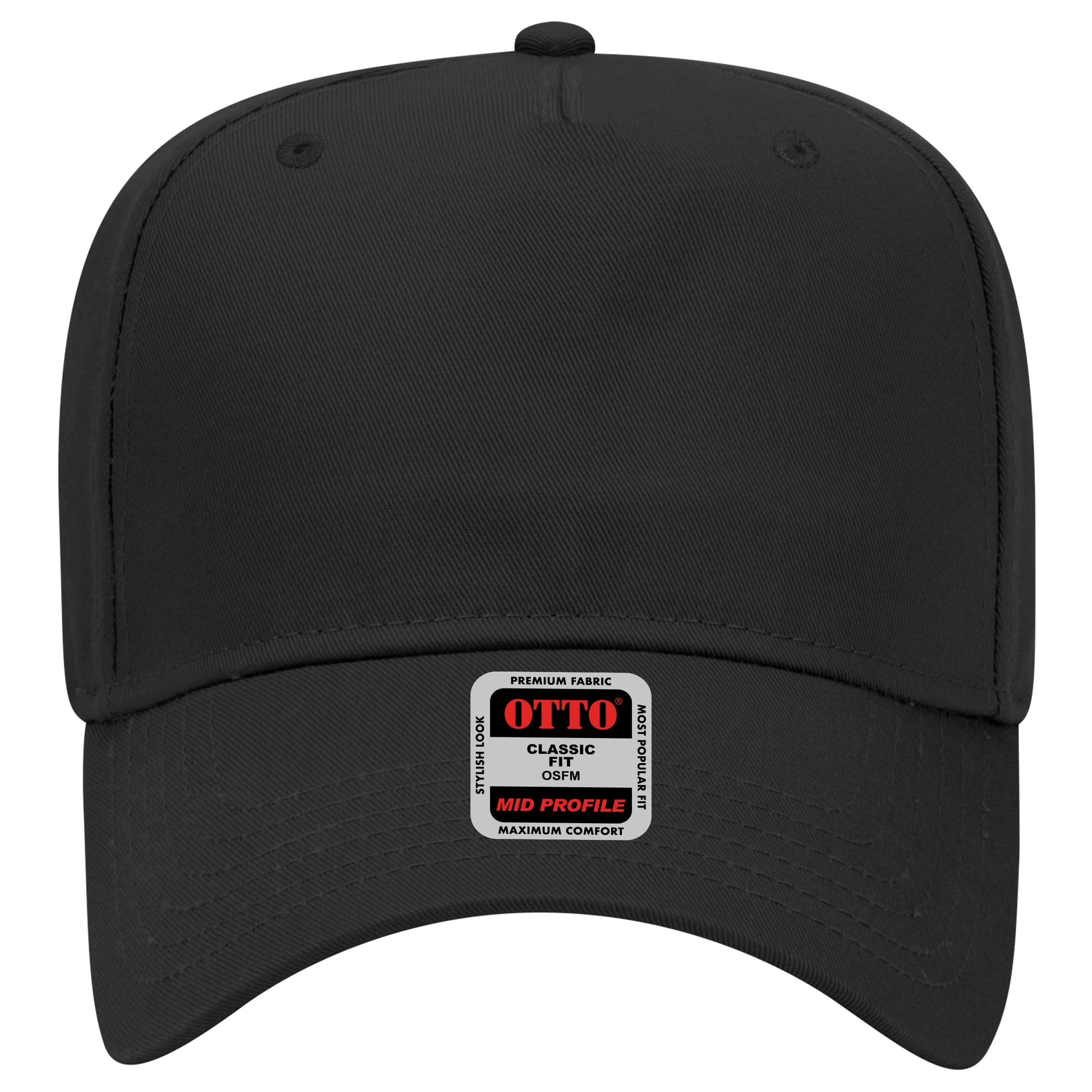 Black Crown Blank – Otto Cap 31-069 Mid Profile 5-Panel Baseball Cap (Structured Fit)